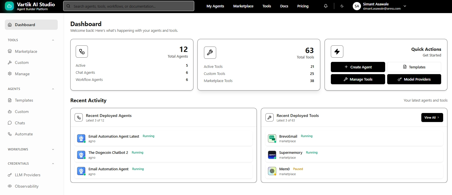 Agents Studio is your command center for creating and managing AI agents. Whether you need a customer support chatbot, a data analysis agent, or a workflow automation agent, you can build it here-no coding required.